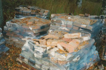 [Fotografi taget av fil. lic. Lars Back den 1 oktober år 1993. Ackompanjerad av följande bildtext i albumet:] "Stockar, taktegel, tegel, plankor och bräder."