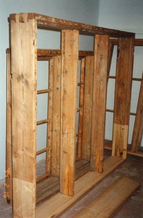 Fotografi taget av fil. lic. Lars Back den 16 februari år 1994. Ackompanjerad av följande bildtext i albumet: "Fönster- och dörrkarmar repareras."