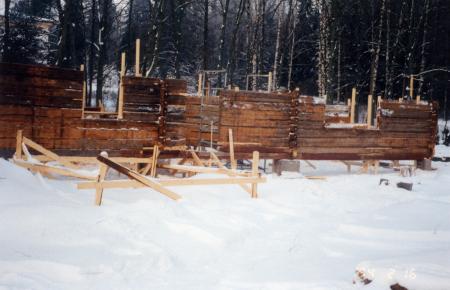 Fotografi taget av fil. lic. Lars Back den 16 februari år 1994. Ackompanjerad av följande bildtext i albumet: "Huset börjar ta form (fasaden)."