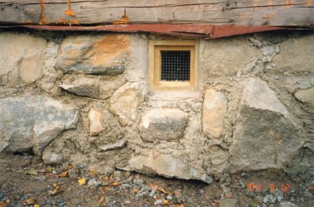 Fotografi taget av fil. lic. Lars Back den 12 september år 1994. Ackompanjerad av följande bildtext i albumet: "Stenfoten murad och vädringsluckor insatta."