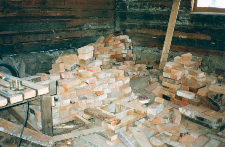 [Foto taget av fil. lic. Lars Back den 31 oktober år 1995. Bildtexten lyder:] "Gamla tegel till brandmur i bagarstugan".