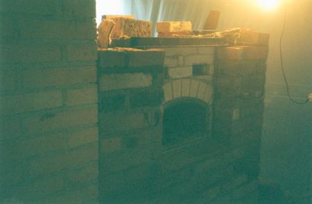 [Foto taget av fil. lic. Lars Back - odaterat, men antagligen från december år 1995 eller januari år 1996. Bildtexten lyder:] "Bakugnen nästan färdig."