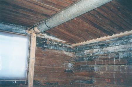 [Foto taget av fil. lic. Lars Back den 9 januari år 1996. Bildtexten lyder:] "Det brutna taket insatt."