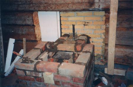 Ämnesord: fotografier, hembygdsarbete, ugnar, tegel, kakelugnar, murning, ombyggnad, färgfotografering |
