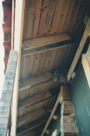 [Foto taget av hembygdsföreningens medlem Kaj Waldén - odaterat, men antagligen från maj år 1996. Bildtexten lyder:] "Takkant från gaveln".