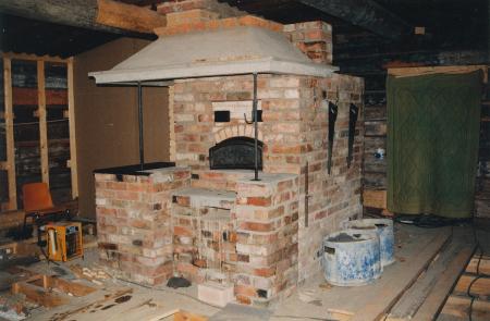 [Foto taget av hembygdsföreningens medlem Kaj Waldén - odaterat, men antagligen från juni år 1996. Bildtexten lyder:] "Köksspisen och bakugnen murad".