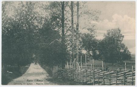 Ämnesord: fotografier, postkort, staket, svartvit fotografering, landsvägar |