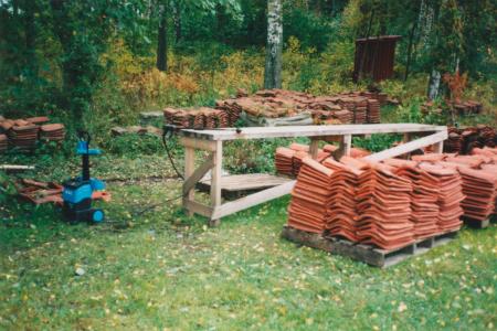 [Fotografi taget av fil. lic. Lars Back - odaterat, men antagligen från år 1995. Ackompanjerad av följande bildtext:] "Taktegel rengjorda".