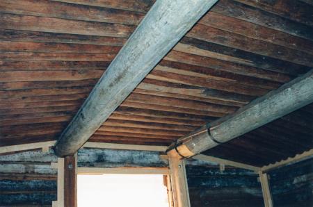 [Foto taget av hembygdsföreningens medlem Kaj Waldén - odaterat, men antagligen från maj år 1996. Bildtexten lyder:] "Takbjälkar i köket."