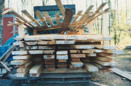 [Foto taget av hembygdsföreningens medlem Kaj Waldén - odaterat, men antagligen från maj år 1996. Bildtexten lyder:] "Nytt golvvirke."
