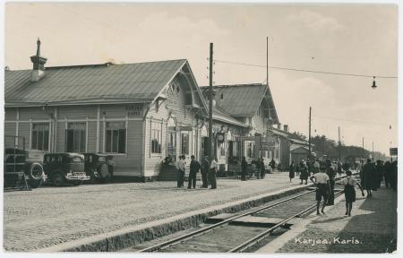 Ämnesord: fotografier, bilar, postkort, järnvägsstationer, svartvit fotografering, balttyskar |